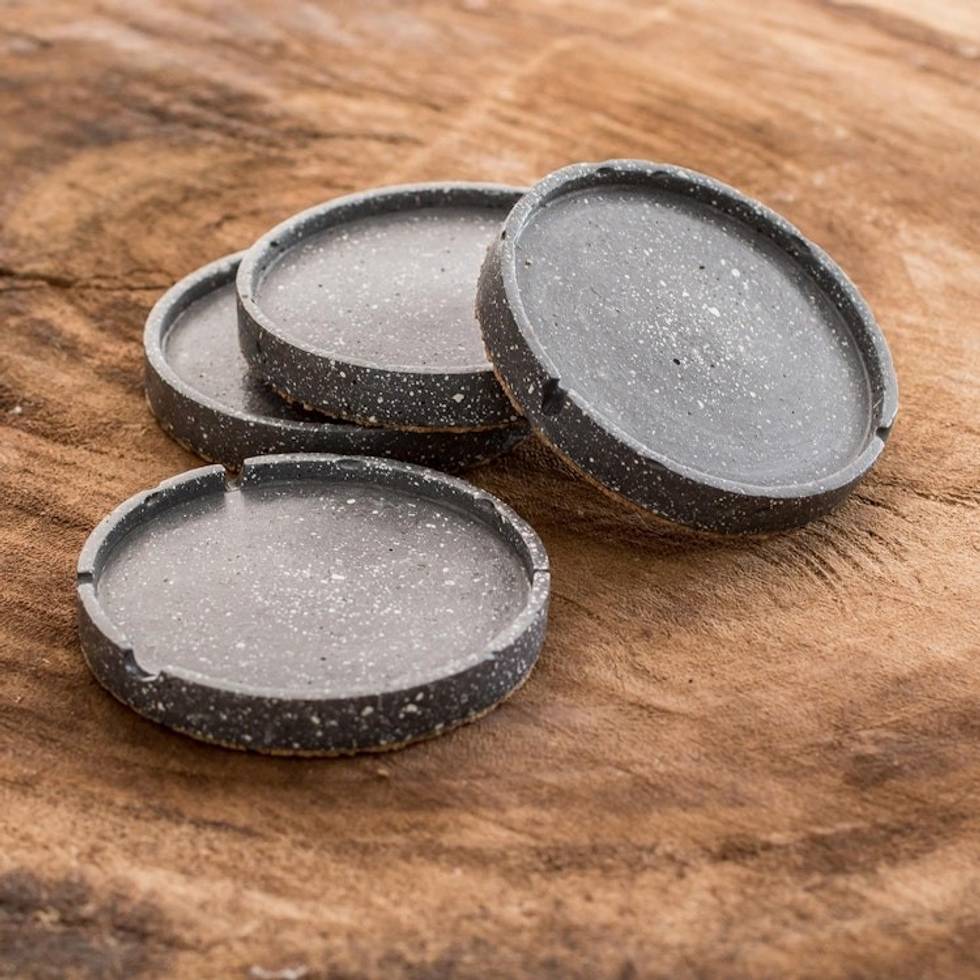 Molded Cement Round Coasters in Speckled Black Set of 4 'Speckled Black' Item ID: 2671772123