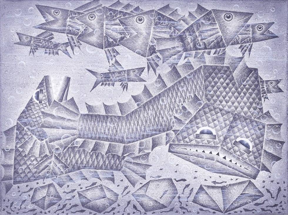 Monochrome Fish Painting in Acrylics on Canvas 'The Parent' Item ID: 2671797936