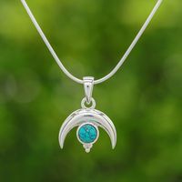 Moon-Shaped Reconstituted Turquoise Pendant Necklace 'Moon on The Lagoon' Item ID: 2671797328