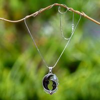 Moon Sterling Silver Pendant Necklace with Natural Gems 'Shadow Harmony' Item ID: 2669922778