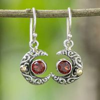 Moon-Themed Natural Garnet Dangle Earrings with Gold Accents 'A Night of Crimson' Item ID: 2676659497