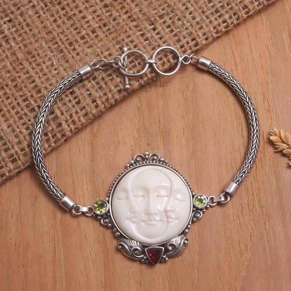 Moon-Themed Sterling Silver Bracelet with Peridot and Garnet 'Moon Gathering' Item ID: 2671763209