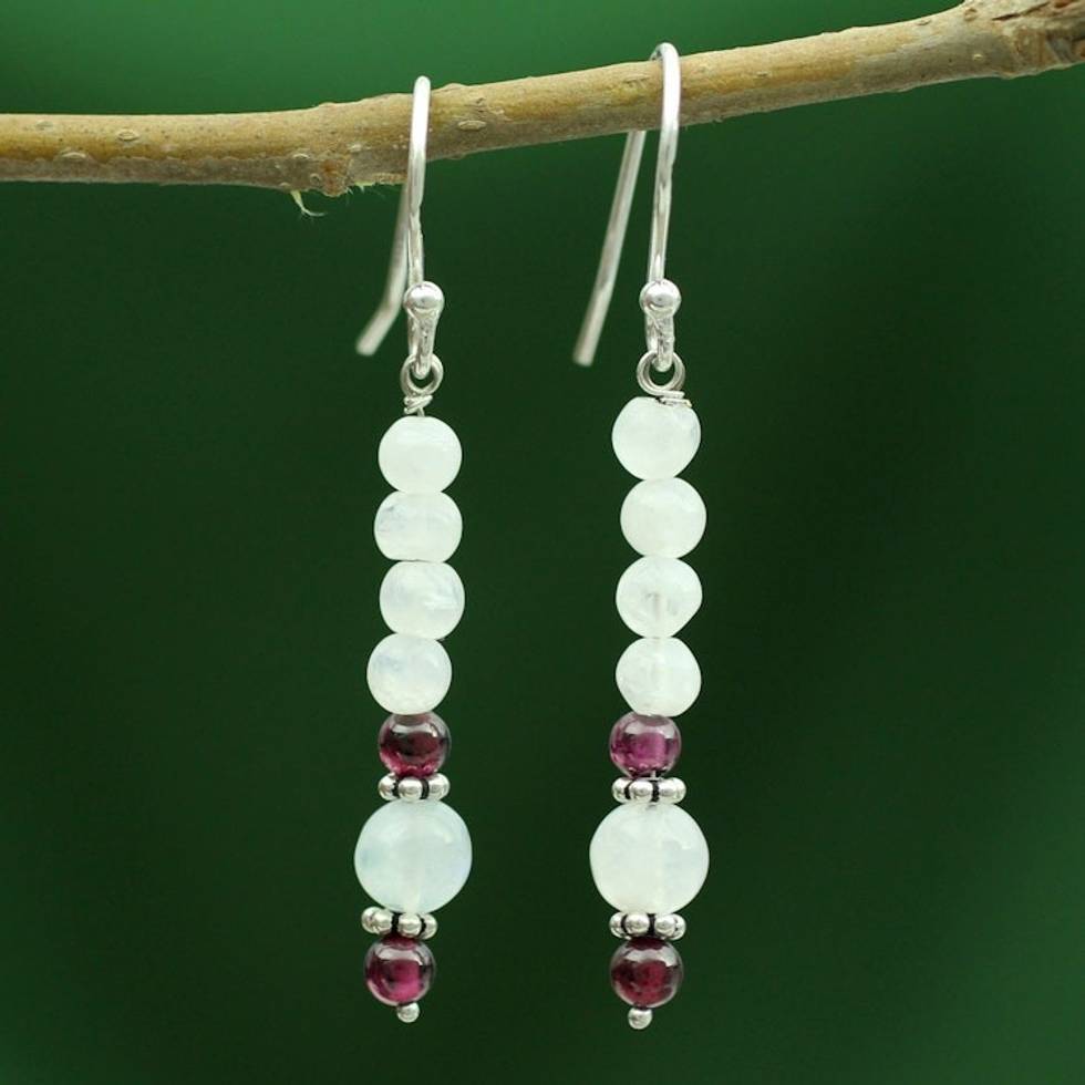 Moonstone and garnet dangle earrings 'Rajasthan Dancer' Item ID: 2671618578