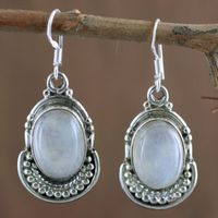 Moonstone and Sterling Silver Dangle Earrings 'Rainbow Ice' Item ID: 2671794439