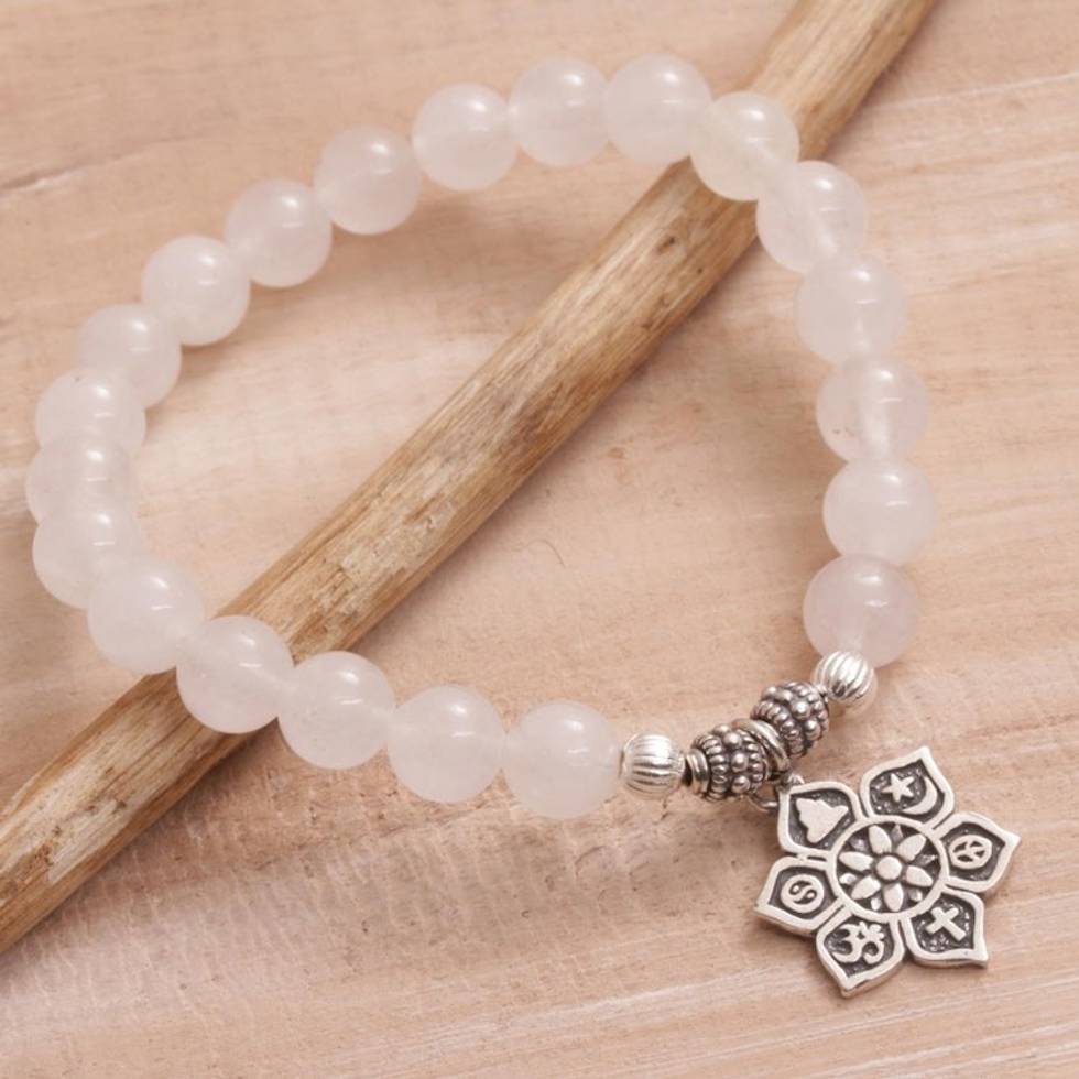 Moonstone Beaded Stretch Bracelet from Bali 'Unity Flower' Item ID: 2671733907