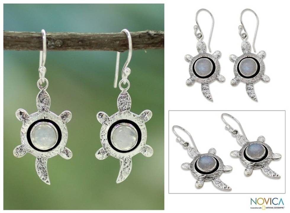 Moonstone dangle earrings 'Turtle Wisdom' Item ID: 2671795063