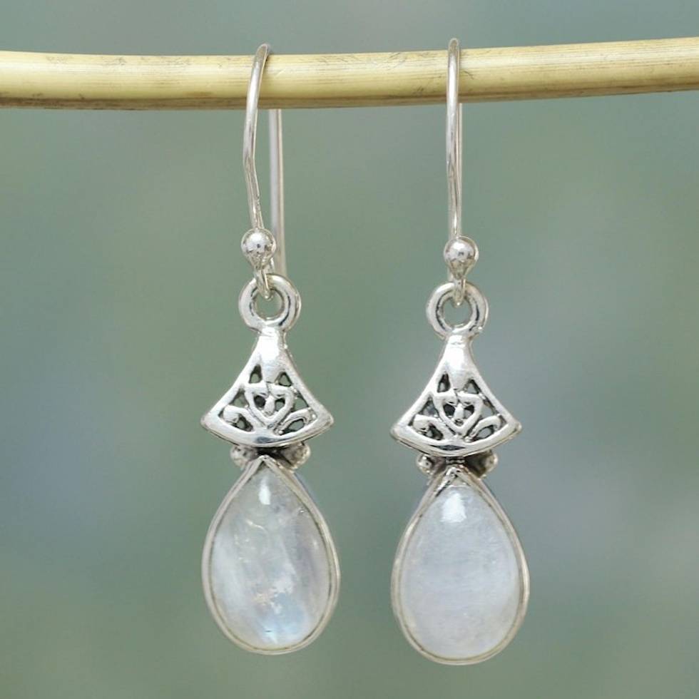 Moonstone Earrings in Sterling Silver from India 'Misty Morn' Item ID: 2671794481