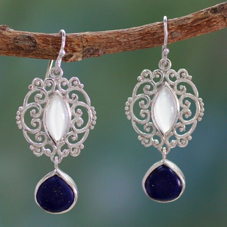Moonstone Lapis Lazuli and Silver Earrings from India 'Simply Sumptuous' Item ID: 2671793694