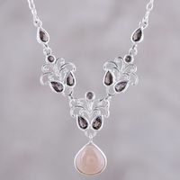 Moonstone Smoky Quartz Sterling Silver Pendant Necklace 'Evening Delight' Item ID: 2669924057