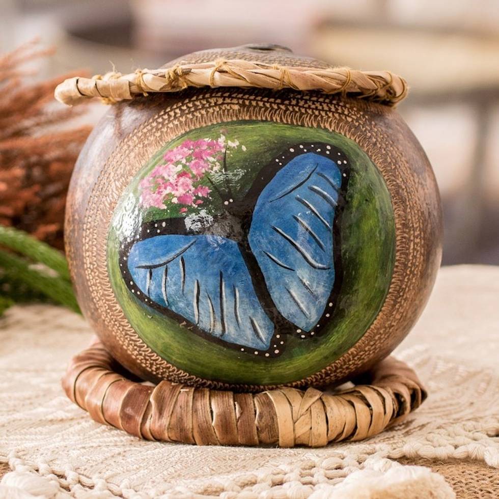 Morpho Butterfly-Themed Dried Gourd Decorative Accent 'Morpho Flutter' Item ID: 2671769829