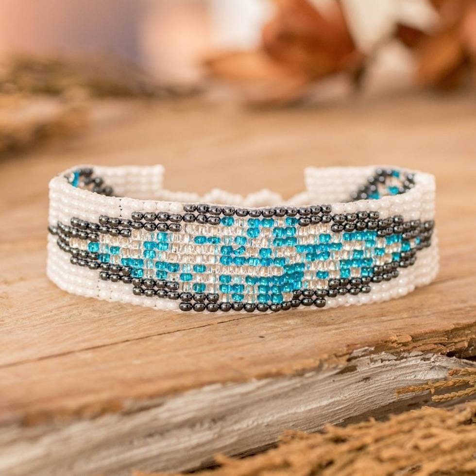 Mosaic-Inspired Blue and White Glass Bead Wristband Bracelet 'Heaven Harmony' Item ID: 2671768875