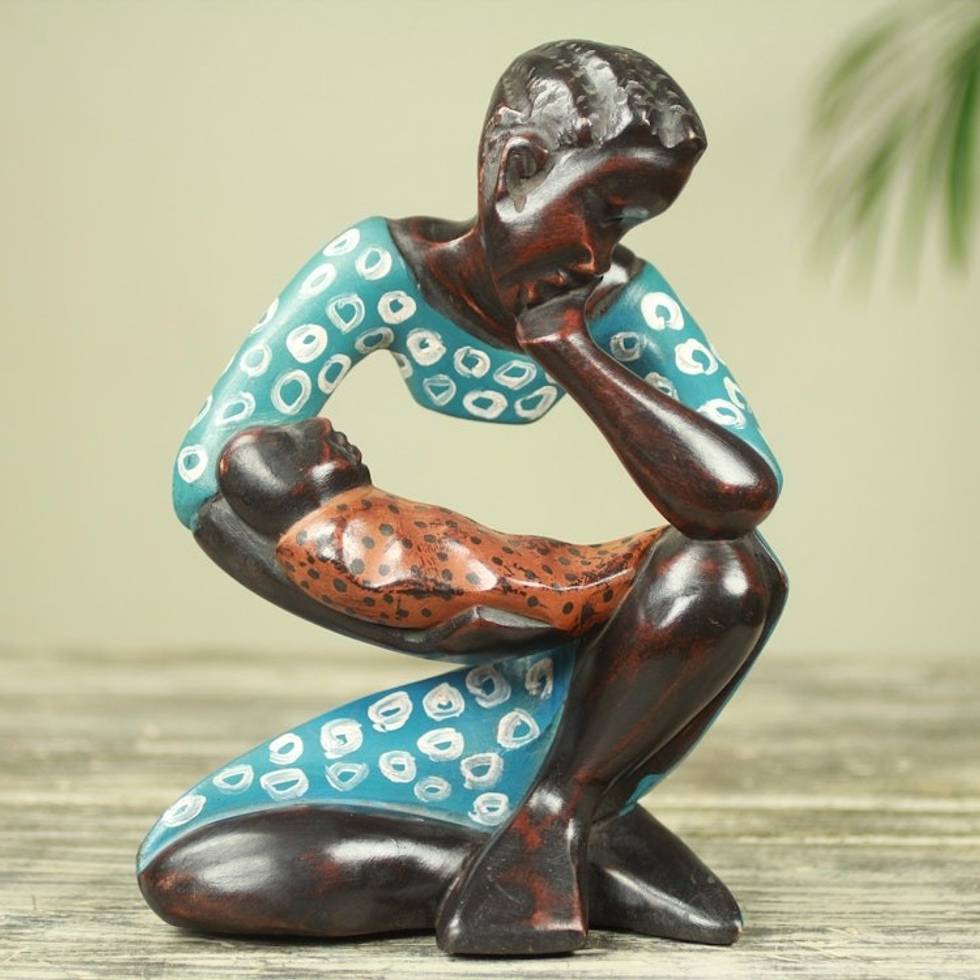Mother and Child Modern Wood Sculpture Carved by Hand 'Thinking Mother' Item ID: 2671803881