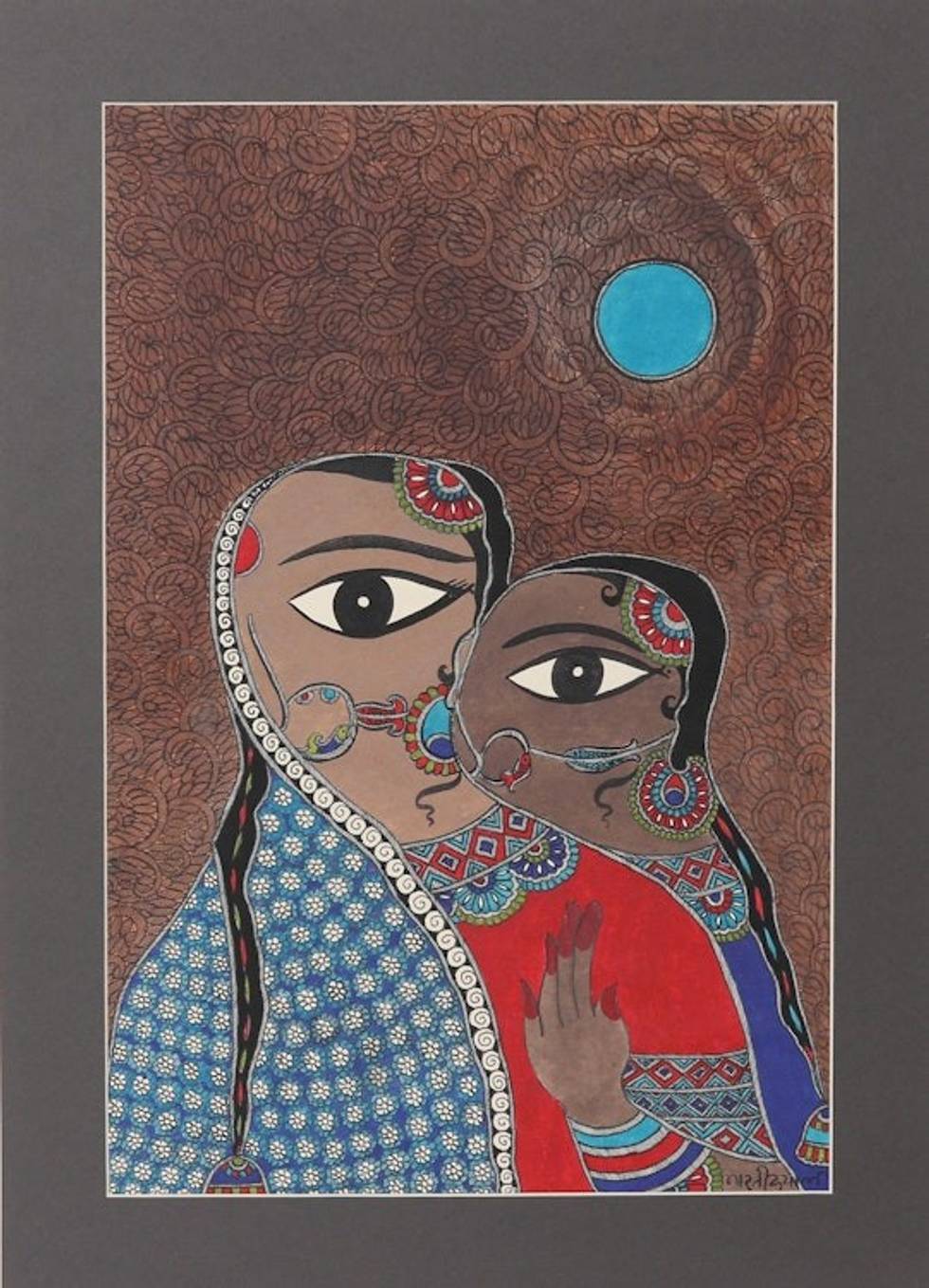 Mother and Daughter Madhubani Painting on Paper from India 'Motherly Bonds' Item ID: 2669890124
