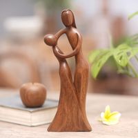 Mother and Daughter Sculpture Hand-Carved from Wood in Bali 'Dancing with Daughter' Item ID: 2671555262