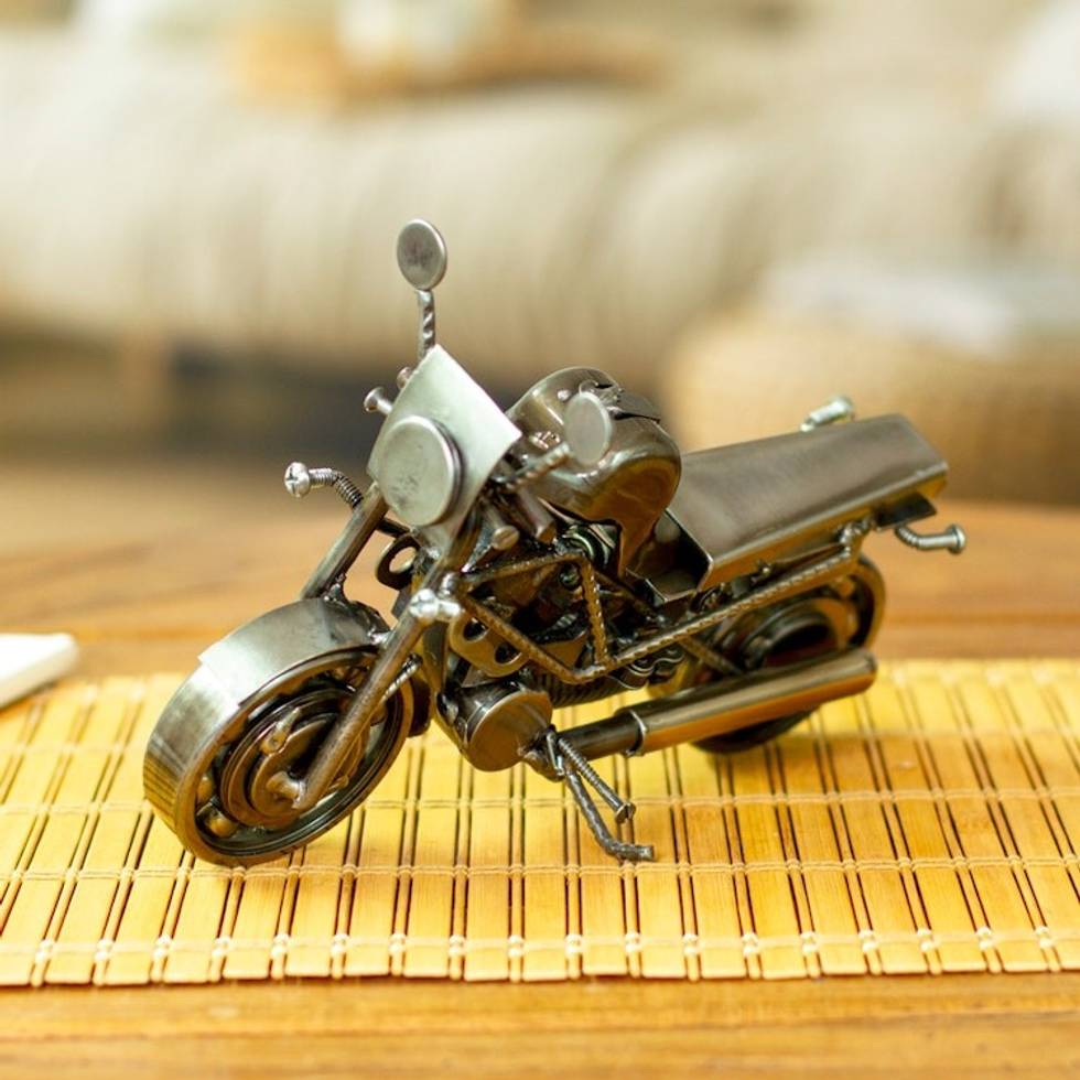 Motorcycle Metal Recycled Sculpture from Mexico 'Rustic Monster Motorbike' Item ID: 2671809005