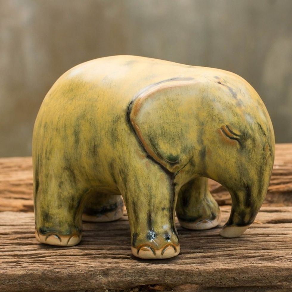 Mottled Yellow Celadon Ceramic Figurine 'Yellow Elephant' Item ID: 2671641168