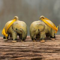 Mottled Yellow Celadon Ceramic Ornaments Pair 'Yellow Elephant' Item ID: 2669897487
