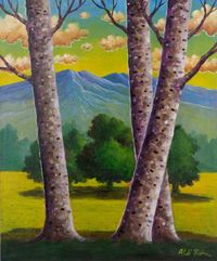 "My paintings are mostly of trees and with themes of the environment. I feel something shining in my mind when I draw a tree because, for me, the tree is the source of life in this world.