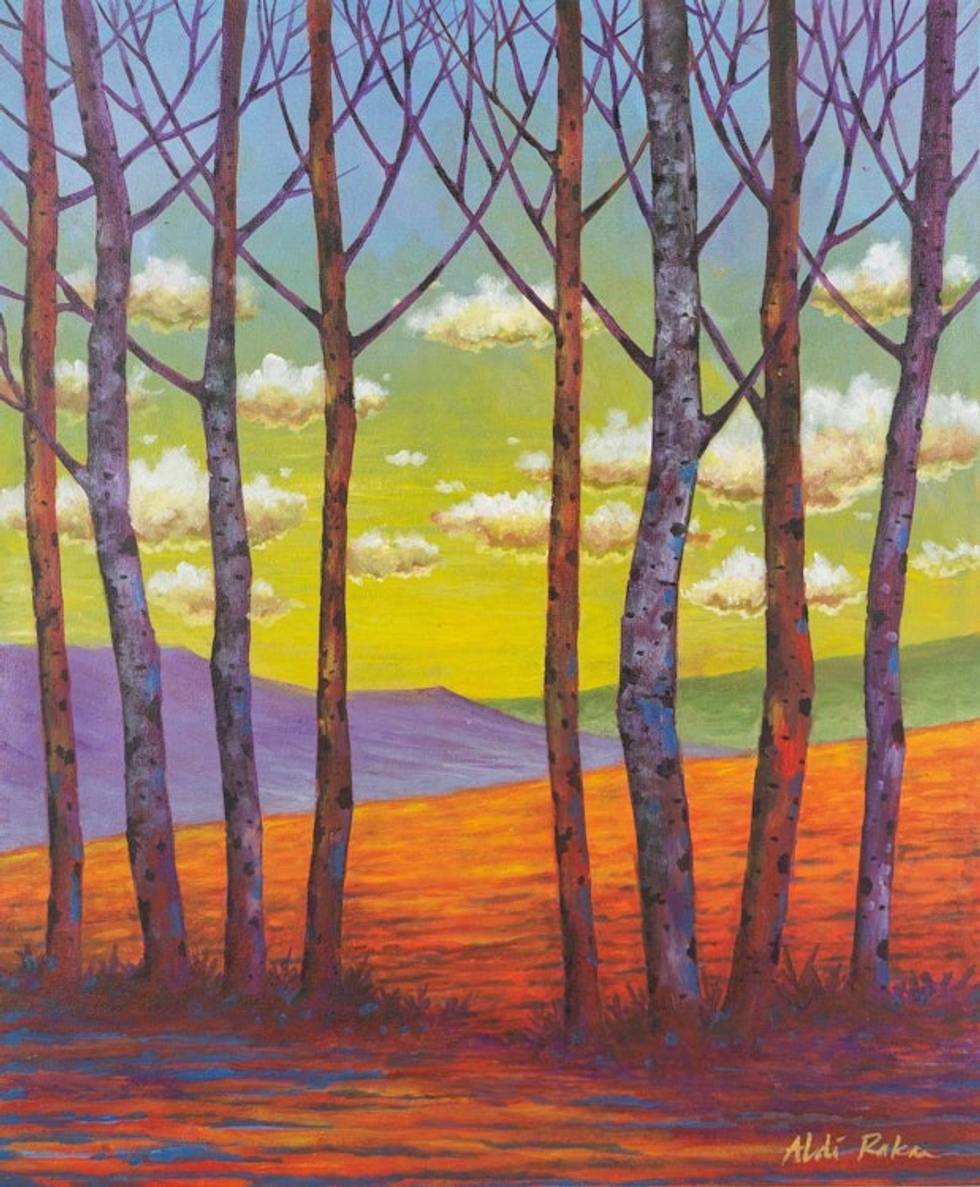 "My paintings are mostly of trees and with themes of the environment. I feel something shining in my mind when I draw a tree because, for me, the tree is the source of life in this world.