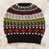 Multi-Color 100 Alpaca Knit Hat with Geometric Motifs 'Motif Medley' Item ID: 2671820113