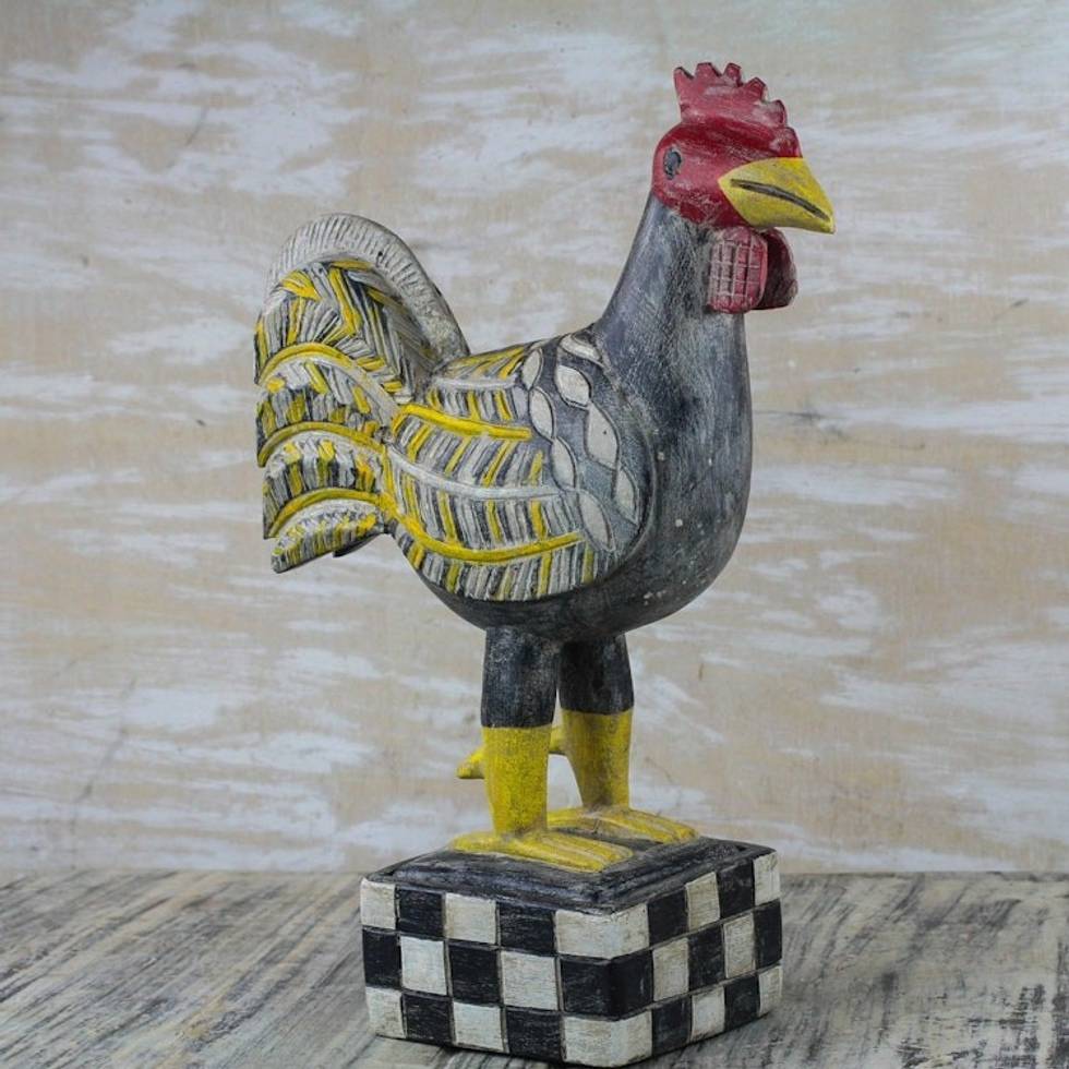 Multi-Color Wood Decorative Box with Rooster Sculpture Lid 'Watchful Rooster' Item ID: 2671805599
