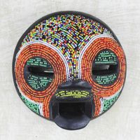 Multi-Colored Recycled Glass Bead and Sese Wood African Mask 'Friend of Nature' Item ID: 2671805710