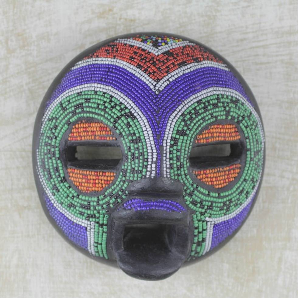 Multi-Colored Recycled Glass Bead and Sese Wood African Mask 'Rainbow Greeting' Item ID: 2671806579