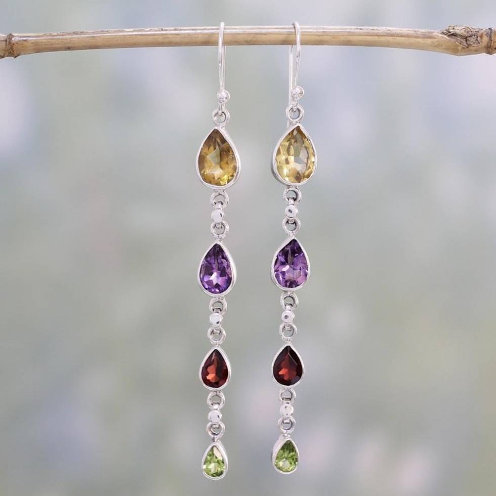 Multi-Gem Citrine Amethyst Garnet and Peridot Earrings 'Dazzling Drops' Item ID: 2669943158