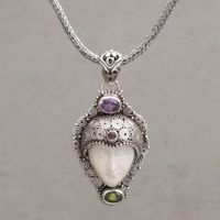 Multi-Gem Silver Face-Shaped Pendant Necklace from Bali 'Sukawati King' Item ID: 2671733884