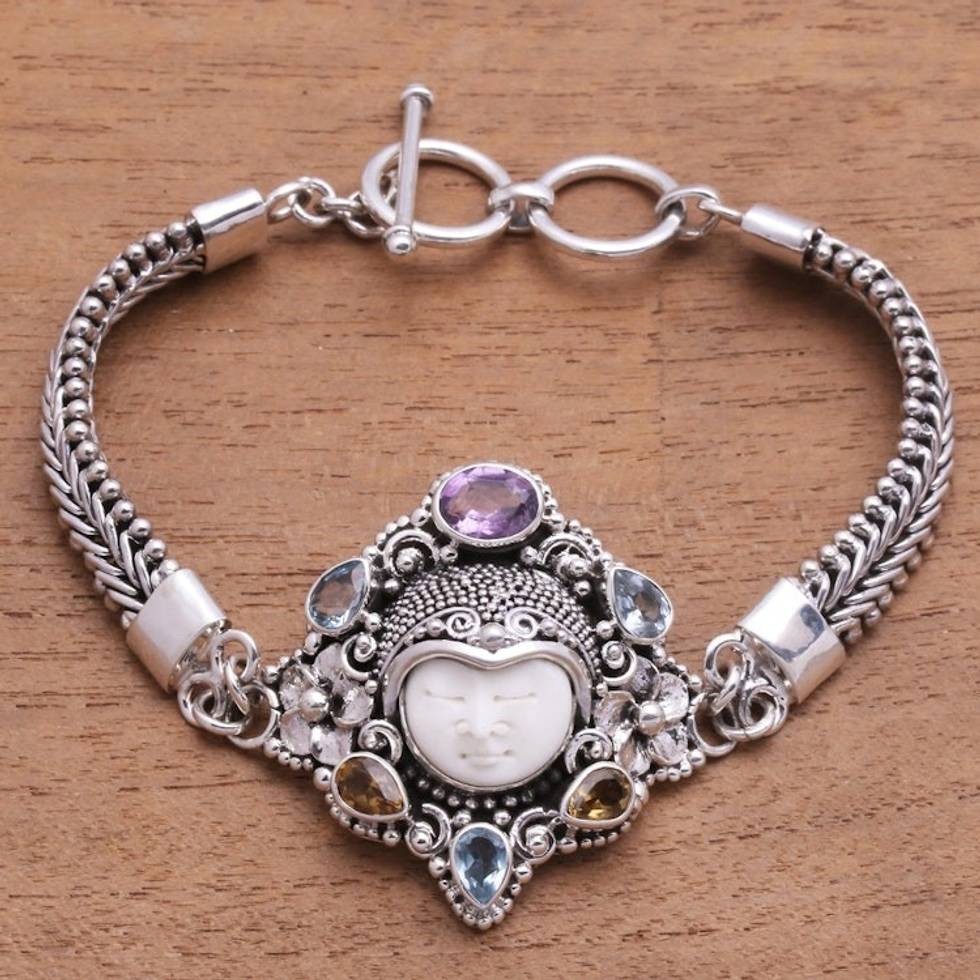 Multi-Gemstone and Bone Pendant Bracelet from Bali 'Guardian of the Rainbow' Item ID: 2671475991