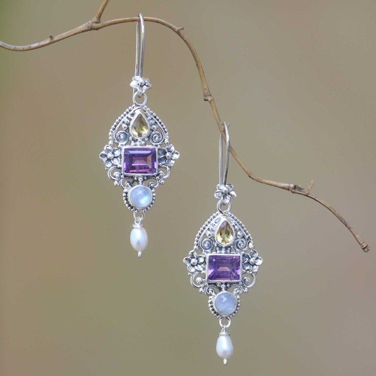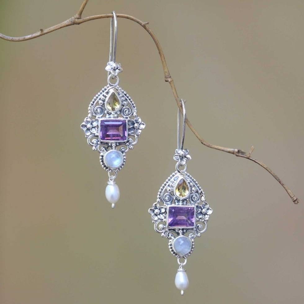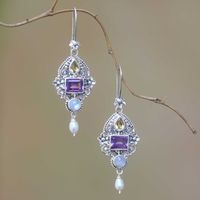 Multi-Gemstone and Ornate Sterling Silver Dangle Earrings 'Intricate Beauty' Item ID: 2671476638