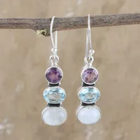 Multi-Gemstone and Sterling Silver Dangle Earrings 'Terrific Trio' Item ID: 2671786991