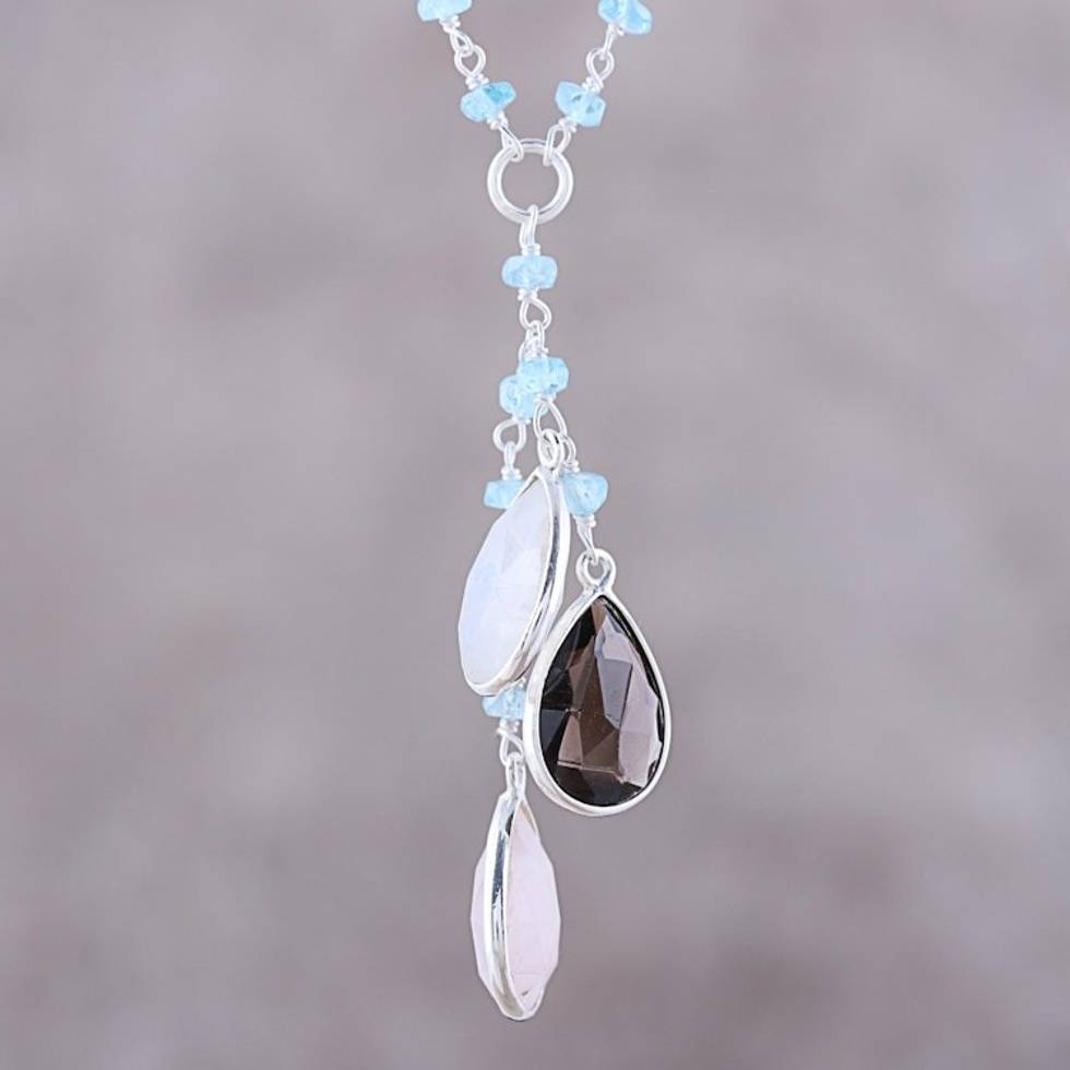 Multi-Gemstone and Sterling Silver Link Pendant Necklace 'Dawn Dew' Item ID: 2671792997