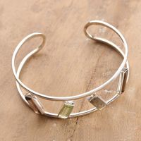 Multi-Gemstone and Sterling Silver Modern Cuff Bracelet 'Tilted Windows' Item ID: 2671792044