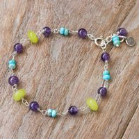 Multi-Gemstone Beaded Charm Bracelet from Thailand 'Festive Swirl' Item ID: 2671797762