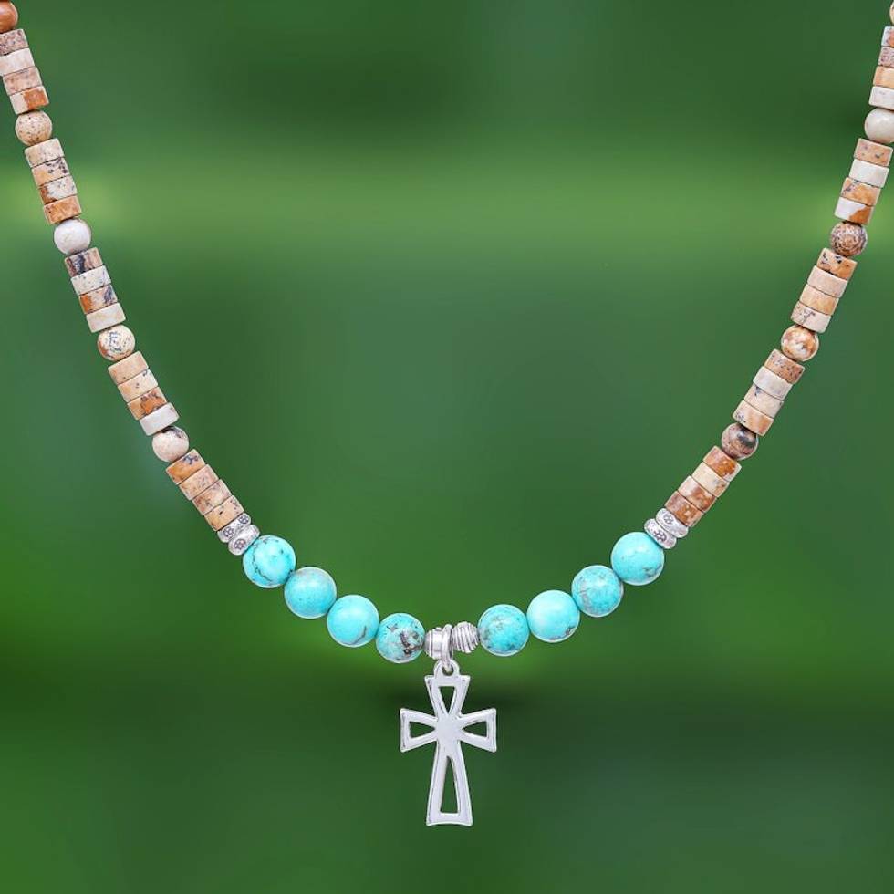 Multi-Gemstone Beaded Cross Pendant Necklace 'Earthy Cross' Item ID: 2671641384