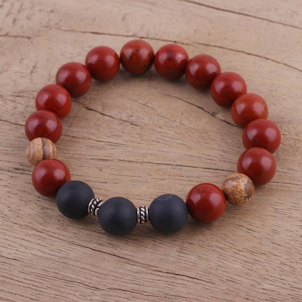 Multi-Gemstone Beaded Stretch Bracelet from India 'Fiery Delight' Item ID: 2671791996