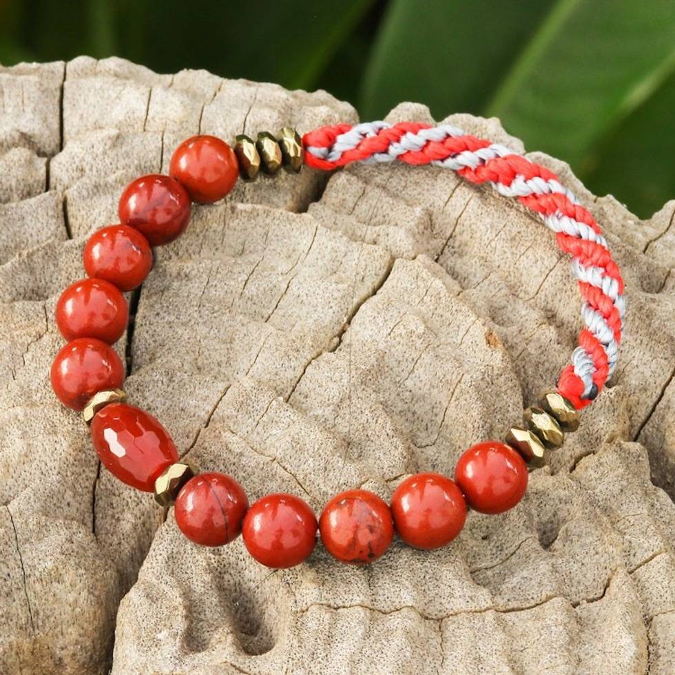 Multi-Gemstone Beaded Stretch Bracelet in Red and Grey Hues 'Balance Crown' Item ID: 2671797755