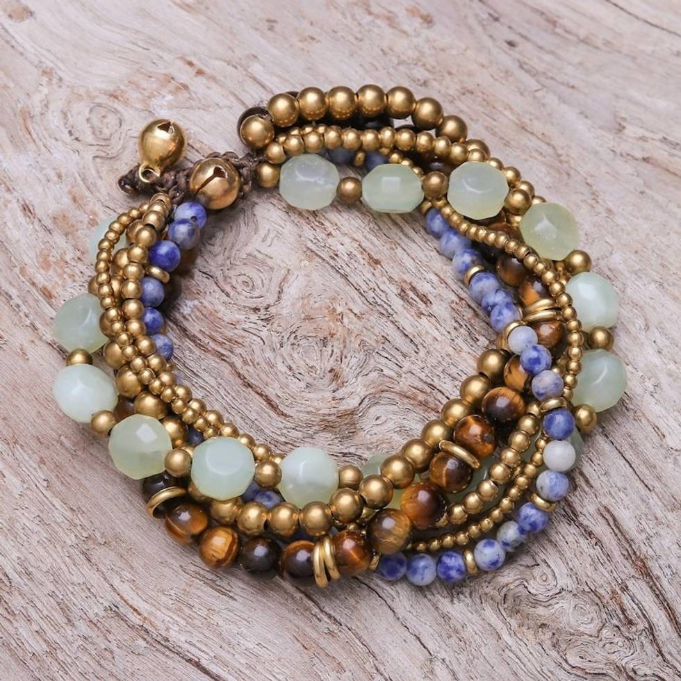 Multi-Gemstone Beaded Torsade Bracelet from Thailand 'Thai Tranquility' Item ID: 2671640933