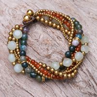 Multi-Gemstone Beaded Torsade Bracelet with Bells 'Thai Vibrance' Item ID: 2669929632
