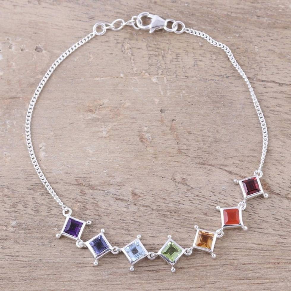 Multi-Gemstone Chakra Bracelet from India 'Wellness' Item ID: 2671619758