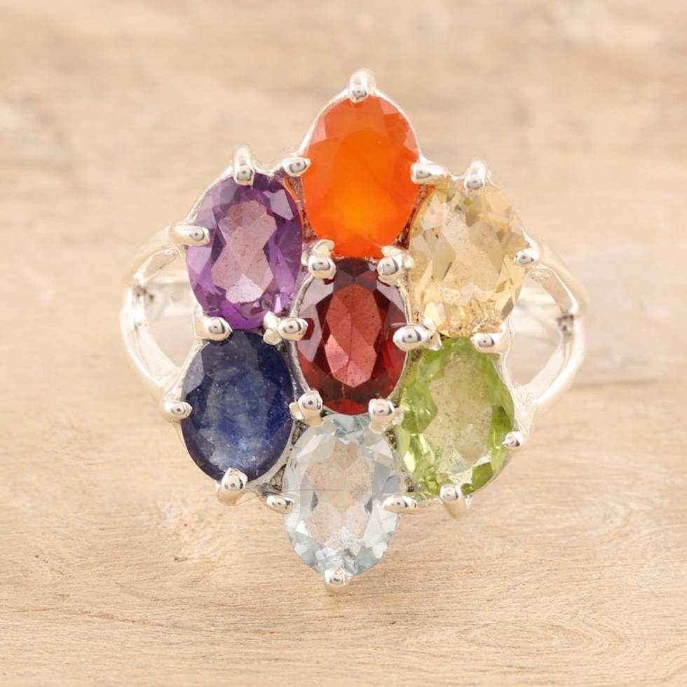 Multi-Gemstone Chakra Cocktail Ring from India 'Chakra Glitter' Item ID: 2671789920