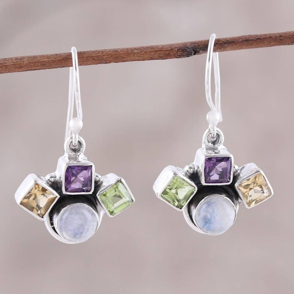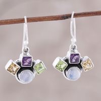 Multi-Gemstone Dangle Earrings Crafted in India 'Lovely Quartet' Item ID: 2671792404
