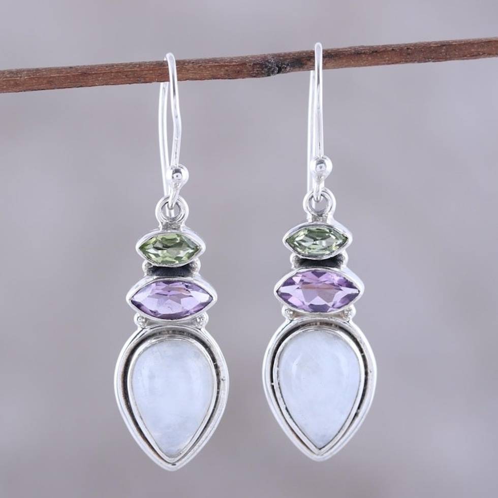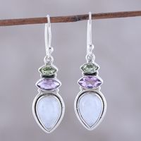 Multi-Gemstone Dangle Earrings from India 'Gemstone Allure' Item ID: 2671792364