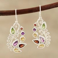 Multi-Gemstone Dangle Earrings from India 'Nature's Dazzle' Item ID: 2671620009