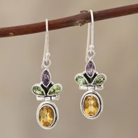 Multi-Gemstone Dangle Earrings from India 'Petal Play' Item ID: 2671789616