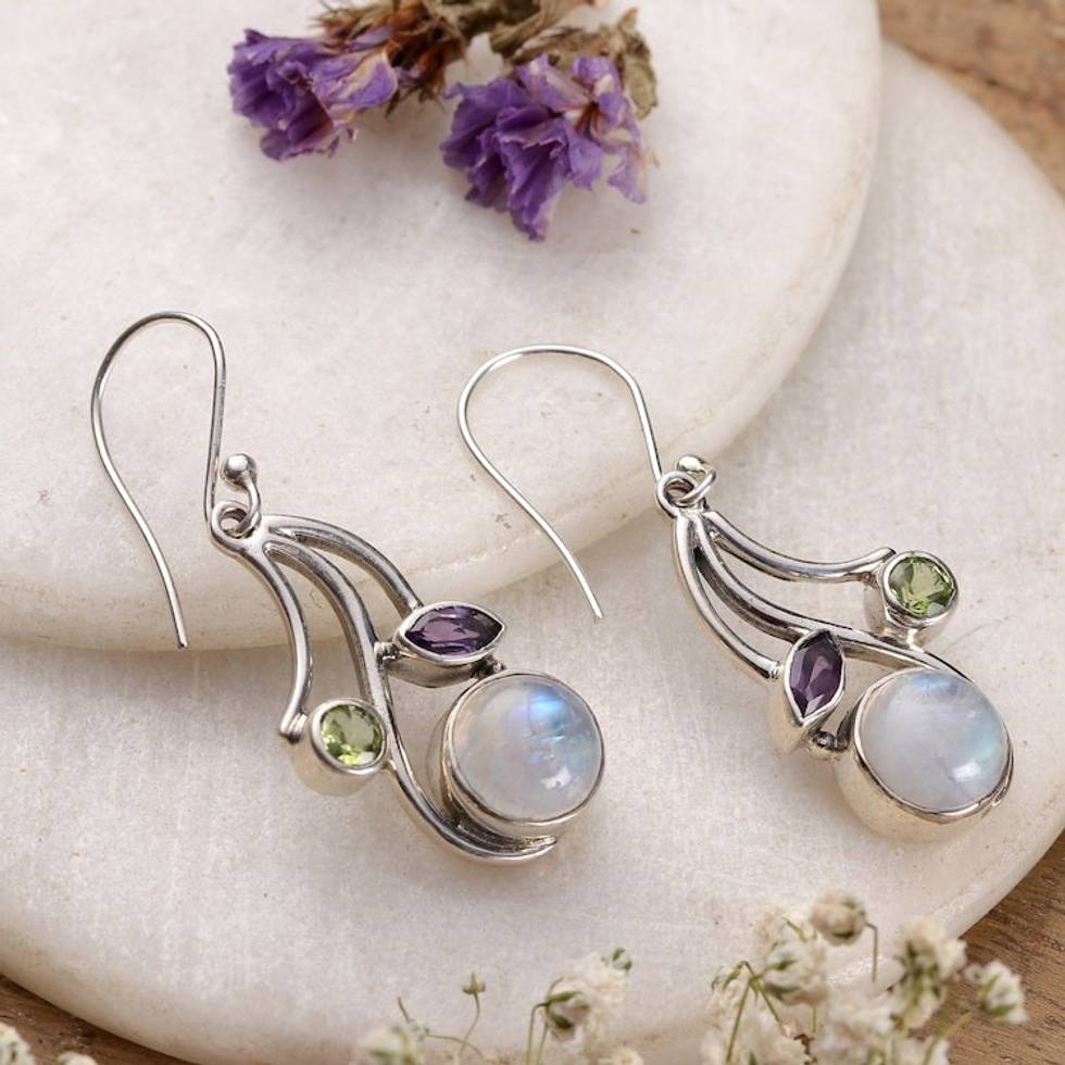 Multi-Gemstone Dangle Earrings from India 'Triple Fascination' Item ID: 2671792001