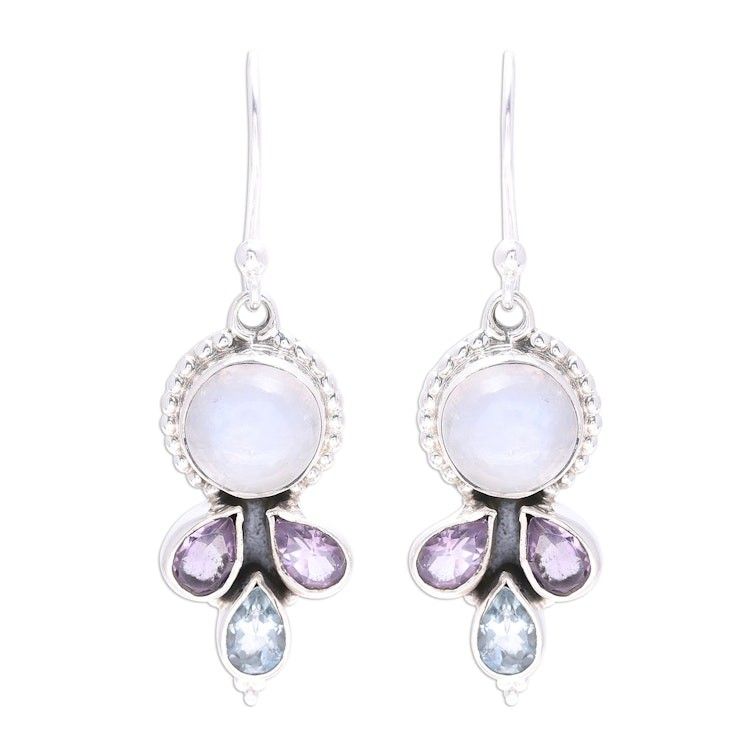 Multi-Gemstone Dangle Earrings Handcrafted in India 'Dancing Elegance' Item ID: 2671792496