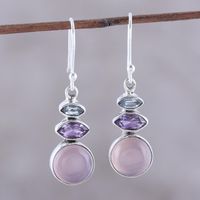 Multi-Gemstone Dangle Earrings in Pink from India 'Peaceful Dazzle in Pink' Item ID: 2671792792