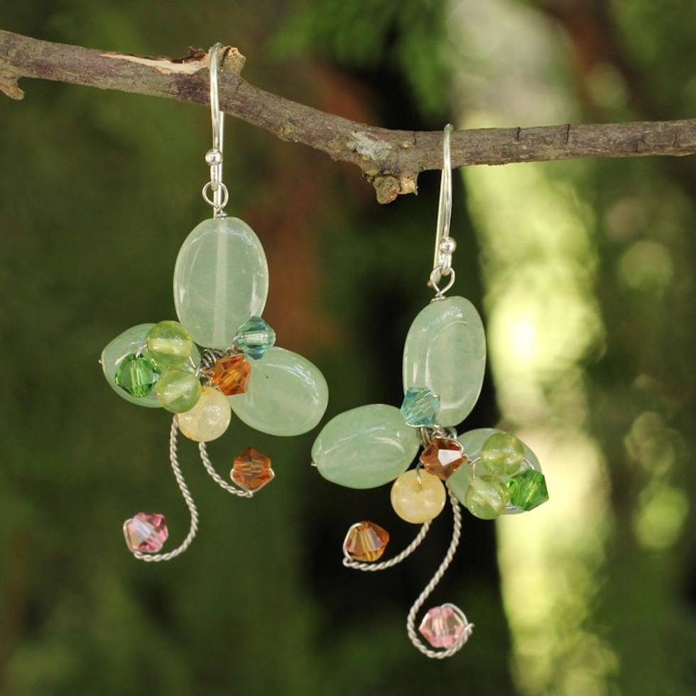 Multi-gemstone Green Earrings Thai Artisan Jewelry 'Glistening Clover' Item ID: 2669930463